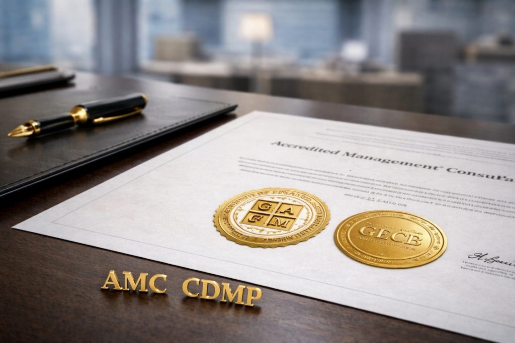 The Accredited Management Consultant (AMC) is a globally aligned professional credential designed to recognize experienced consultants, strategists, and business leaders who demonstrate proven advisory capability across strategy, operations, governance, and organizational performance.