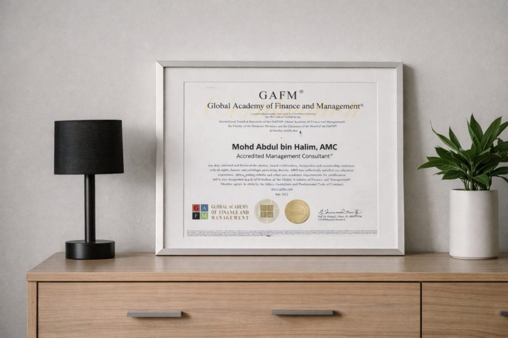 Awarded by GAFM (USA) and endorsed by GECB (MAS), this credential validates professional maturity, consulting competence, and ethical standards within the management advisory field.